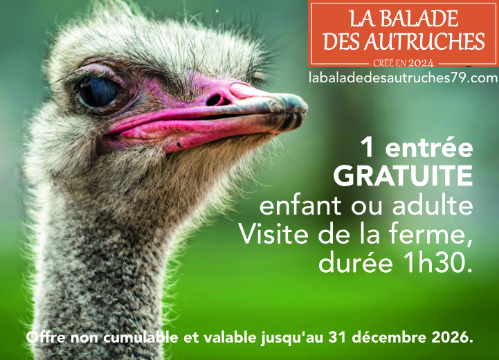 « Nous accueillons tout public. » Ouvert de 14h30 à 18h30 les mercredi, samedi, dimanche et pendant les vacances scolaires du mardi au dimanche. Restauration et animations sur réservation. Tarifs et infos en ligne : www.labaladedesautruches79.com
